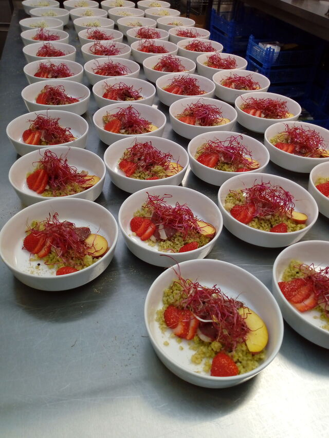 Cuisiner nous-mêmes des produits de qualité à partir d'ingrédients sains, naturels, de saison et sélectionnés avec rigueur est notre leitmotiv dans toutes les situations. Nous veillons également à l'origine régionale et belge de nos produits et utilisons des produits de la ferme et/ou BIO si possible.